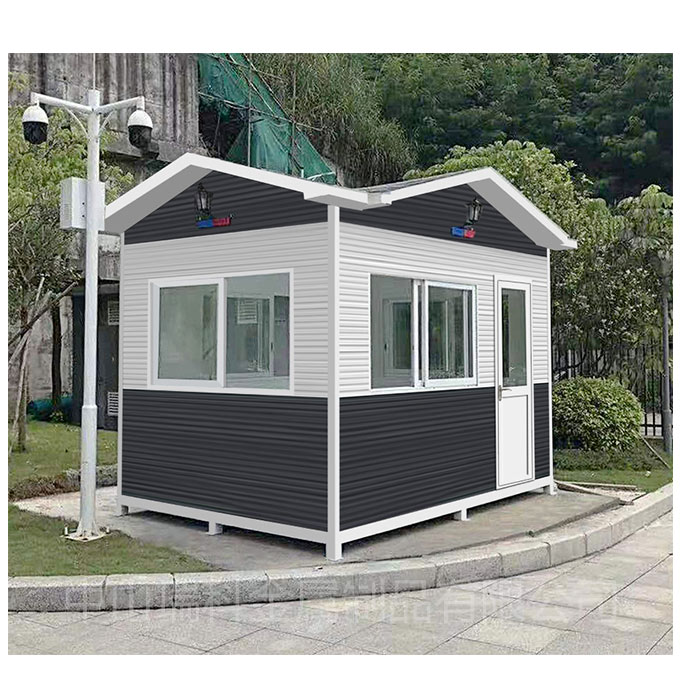 關于不同分類的崗亭的功用 1、活動崗亭。 活動崗亭是一種以輕鋼為骨架,以夾芯板為圍護材料,以標準模數(shù)系列進行空間合,構(gòu)件采用螺栓連接,全新概念的環(huán)保經(jīng)濟型活動崗